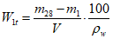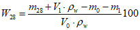 - масса образца и контейнера через 28 сут после их погружения в воду, кг;