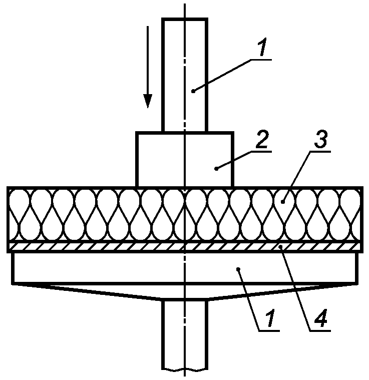 2 - индентор; 3 - образец для испытания; 4 - опорная плита