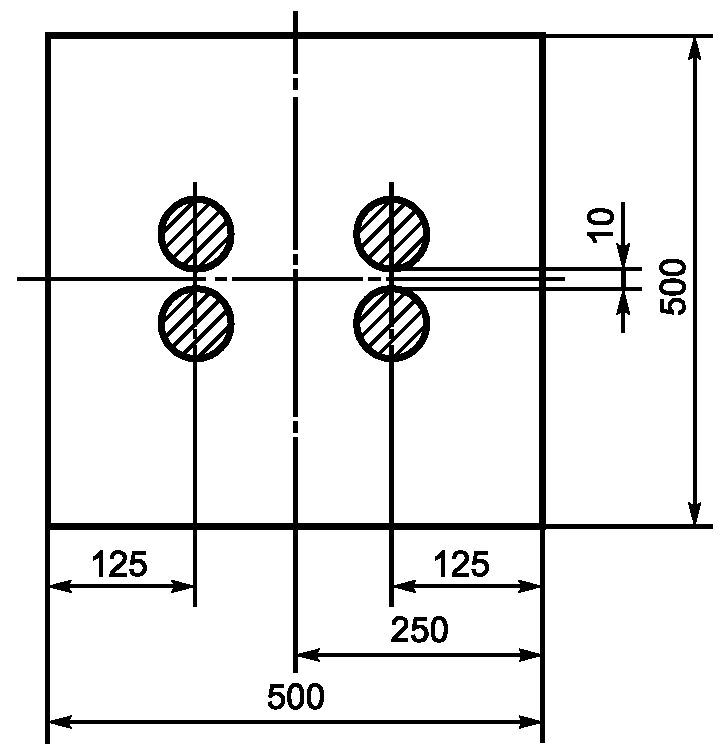 Четыре места расположения индентора для изделий длиной 600 и 500 мм соответственно показаны на