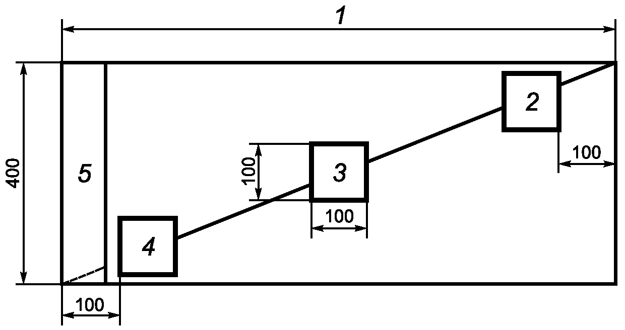 1 - ширина полотна материала; 2, 3, 4 - образцы; 5 - кромка