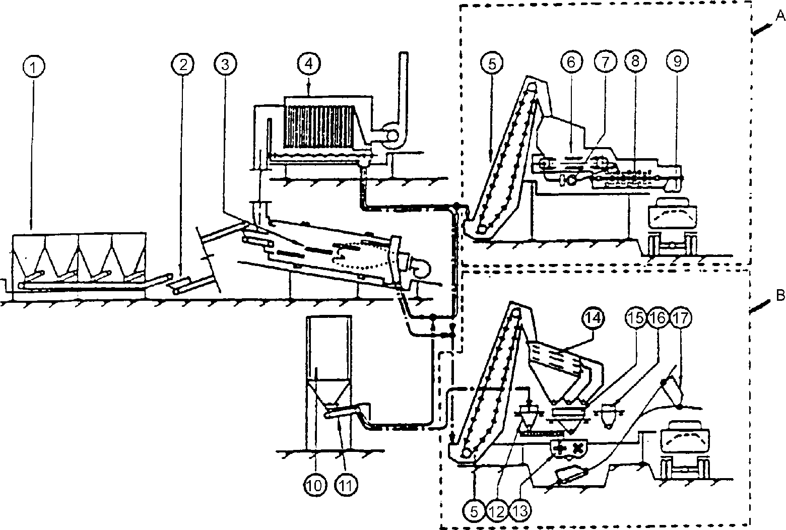 D.3 Асфальтосмесительная установка для непрерывного производства (A) или прерывистого производства (B)