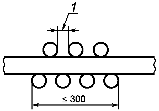 - на каждой стороне лестницы не должно быть большего числа отрезков кабелей, чем необходимо для формирования одного слоя шириной 300 мм с каждой стороны с зазором между отрезками, равным половине диаметра кабеля, но не более 20 мм;