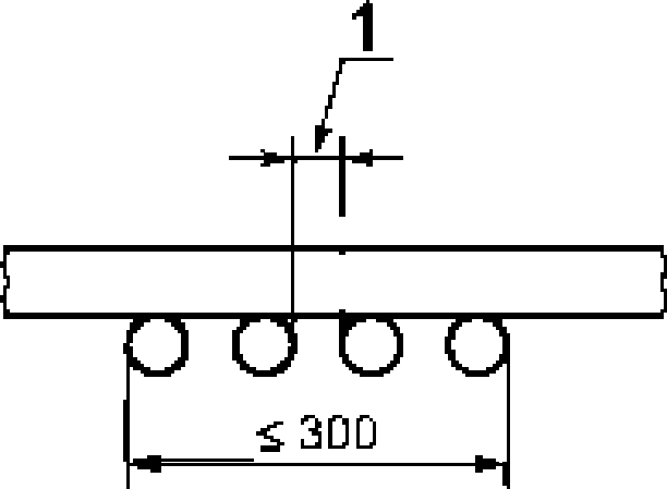 Отрезки кабеля должны крепиться на передней стороне стандартной лестницы одним слоем общей шириной не более 300 мм с зазором между соседними отрезками, равным половине диаметра кабеля, но не более 20 мм (рисунок 1). Расстояние между краем образца и внутренней стороной стойки лестницы должно быть не менее 50 мм.