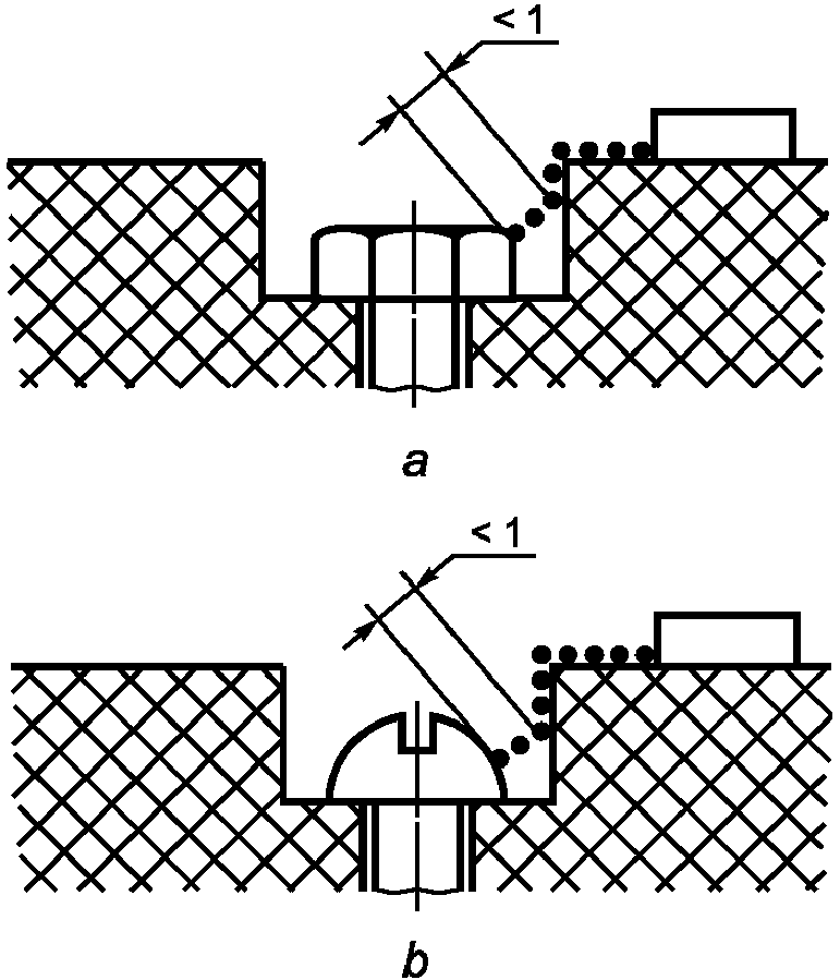 b - расстояние от отрицательного оголенного проводника детали (или части) до наружной поверхности натянутой (или обтянутой) фольги, установленной через расщелины (или отверстия, щели и т.п.);