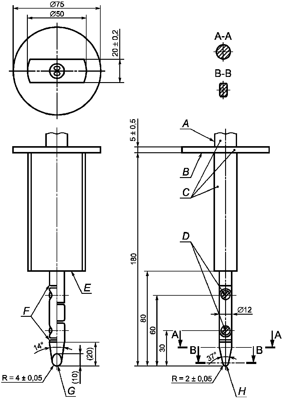 Значение силы, прилагаемой с помощью испытательного пальца, имеющего кончик, как показано на рисунке 1, составляет: