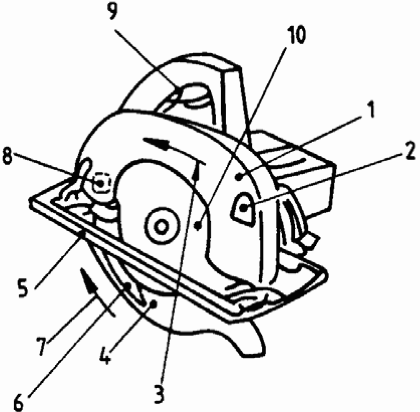 - направление вращения шпинделя, указываемое на пиле в виде выступающей или утопленной стрелки или иными не менее различимыми и неудаляемыми средствами;