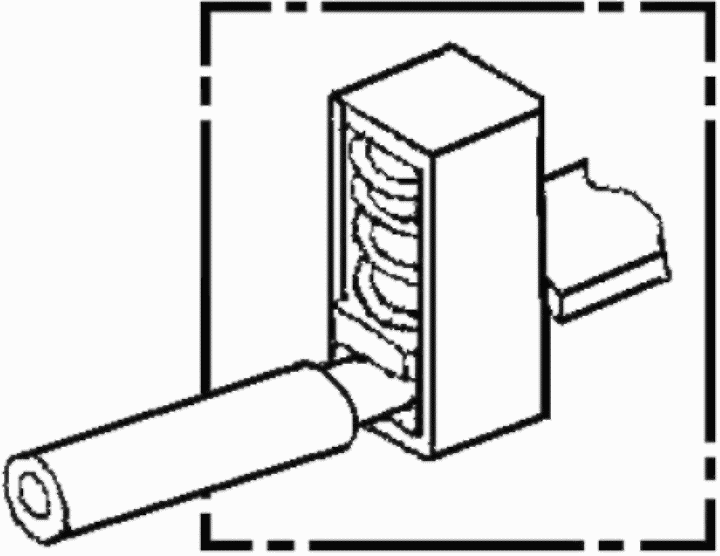 3.101 безвинтовой зажим (screwless-type terminal): Зажим для присоединения и последующего отсоединения двух или нескольких проводников, осуществляемого прямо или косвенно пружинами, клиньями и т.п.