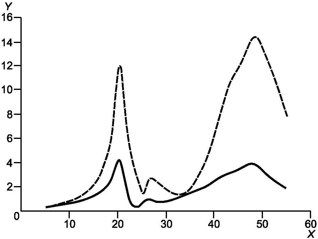 X - частота, Гц; Y - среднеквадратичное значение, мм/с;