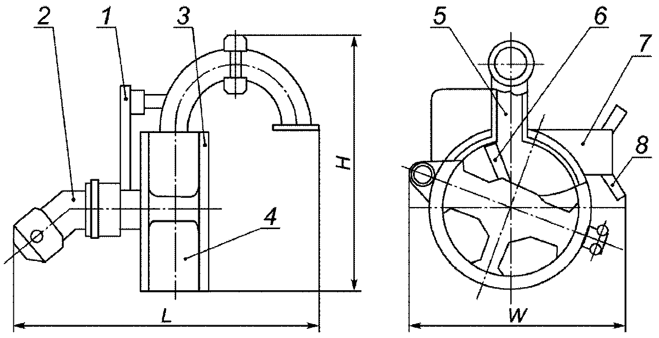 3 - верхний корпус; 4 - нижний корпус; 5 - порт загрузки