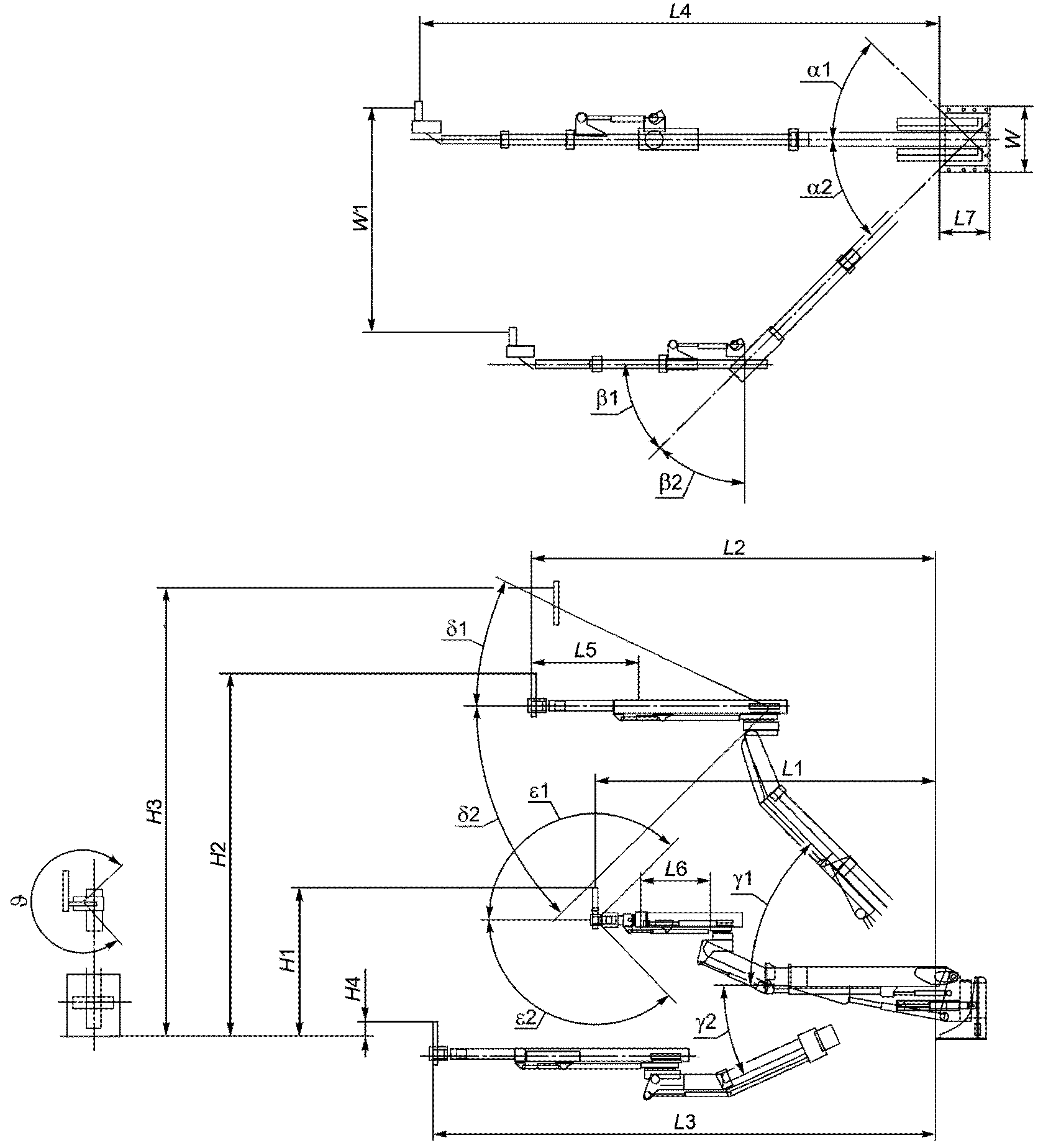 в горизонтальном положении; L4 - максимальный охват стрелы;