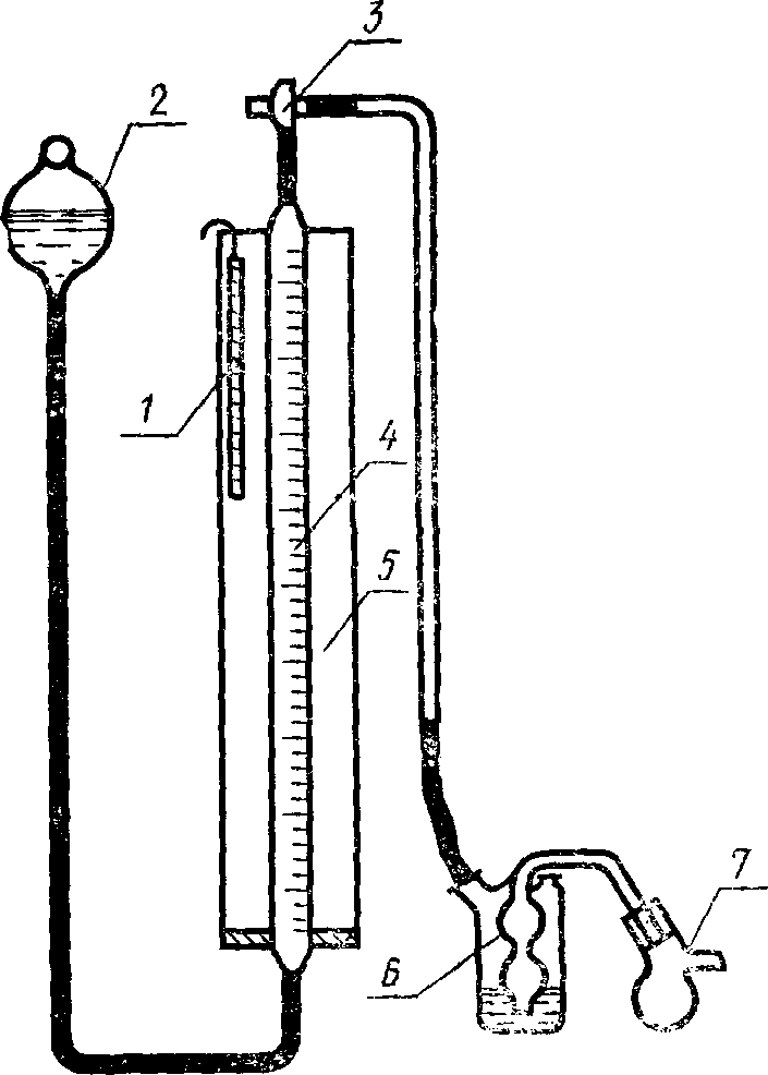 трехходовой; 4 - бюретка газовая; 5 - кожух стеклянный;