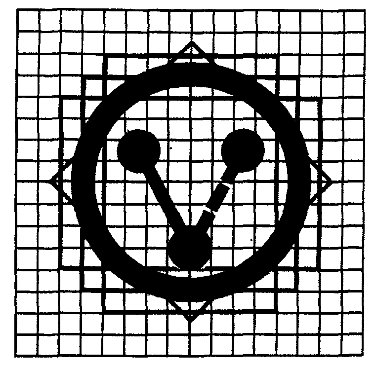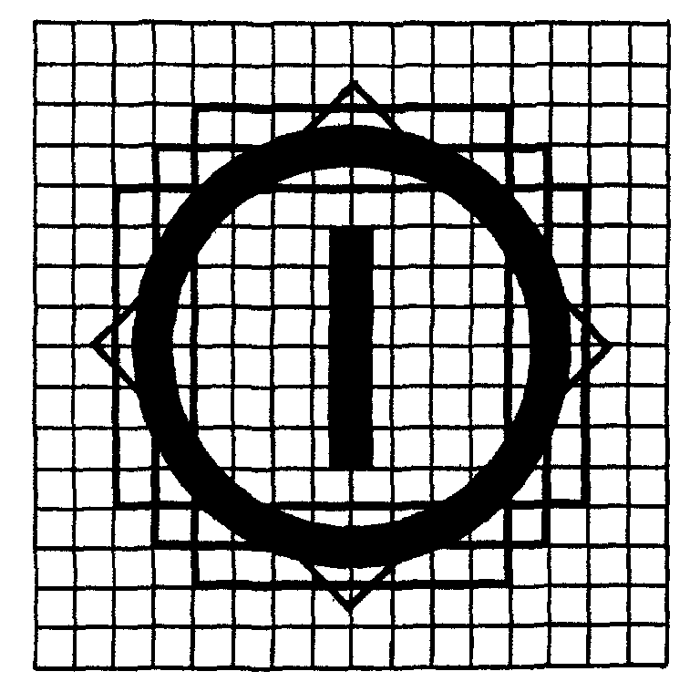 2.14. Исходный чертеж символа, кроме чертежей, предназначенных для символов, выполняемых методом сеткографии, следует изготовлять на прямоугольной модульной сетке (размер модуля 8 мм) по базовому конфигуратору (см. чертеж).
