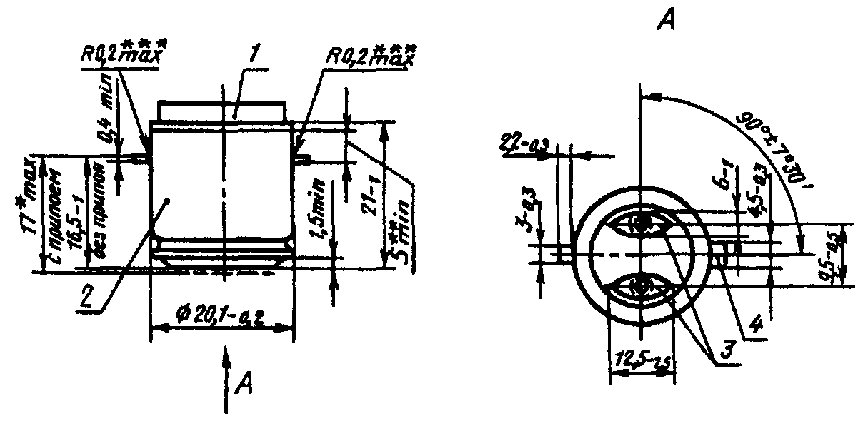 Примечание. Допускается изготовление цоколя с круглыми штифтами диаметром