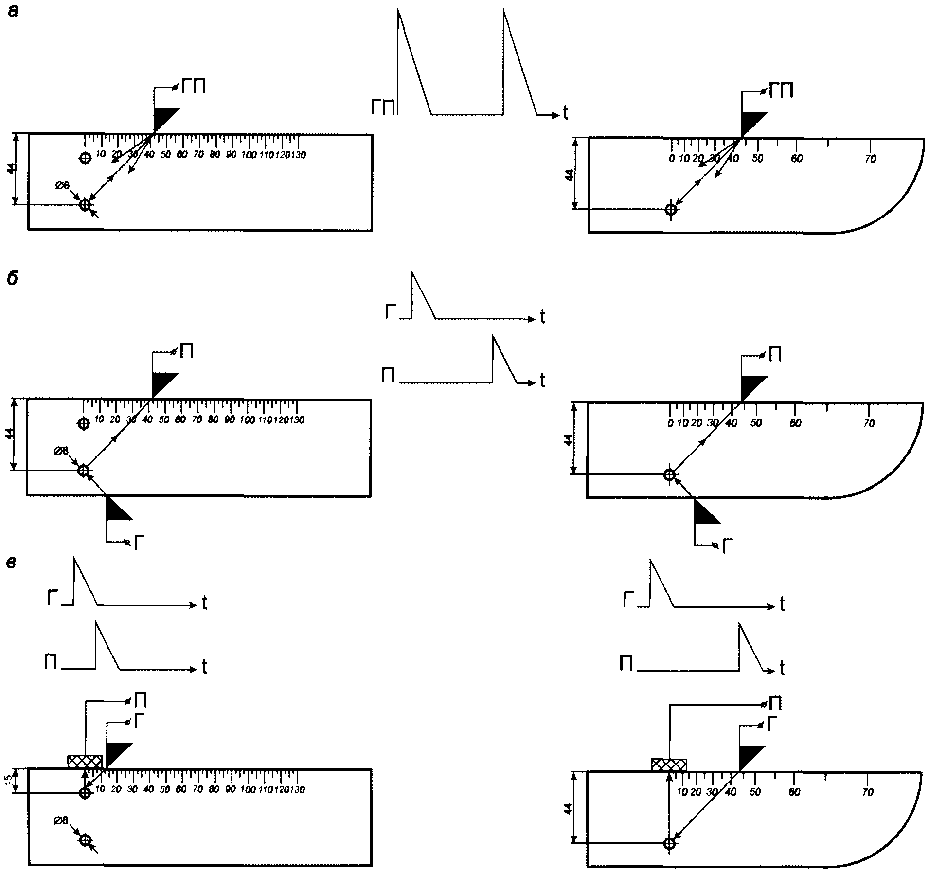 от отражателя диаметром 6Н14 на глубине 44 мм в образце СО-2 (или СО-2Р, или СО-3Р) по формулам: