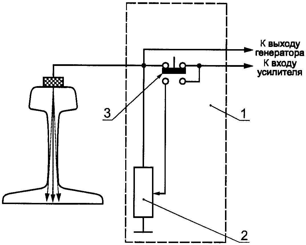 1 - имитатор дефектов, 2 - аттенюатор; 3 - переключатель