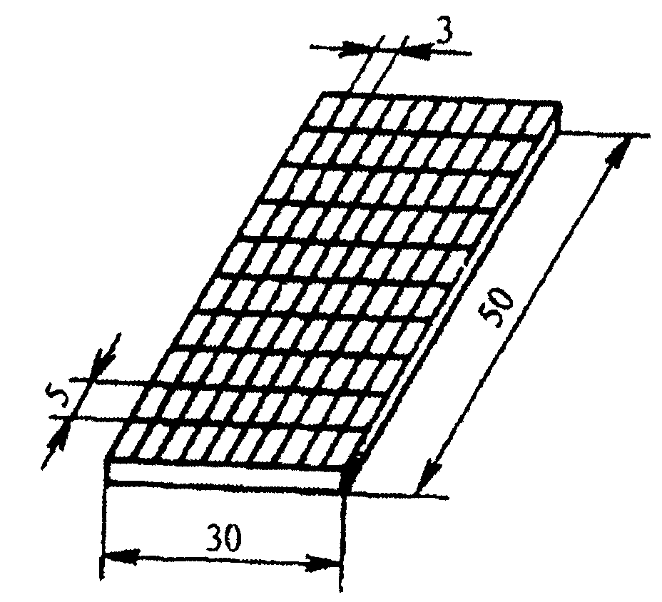 ГОСТ 9784 или оконного стекла по ГОСТ 111 (рисунок 3). Толщина стекла должна быть 1 - 2 мм. Длина трафарета - (48 + 2) мм, ширина - (28 + 2) мм. Разметку сетки на стекле производят механическим или химическим (травление) способом.