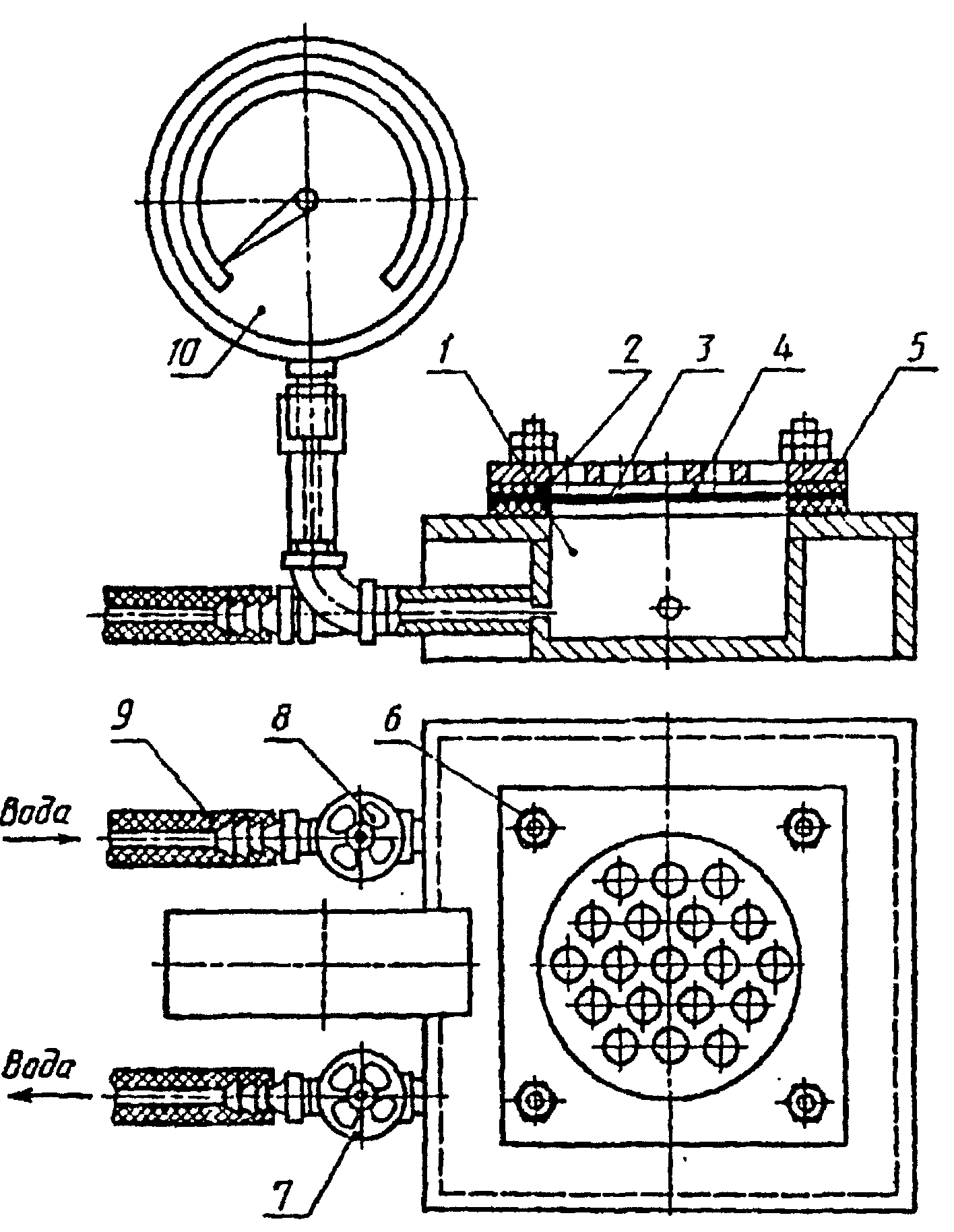 5) сопротивление статическому продавливанию - наличие (или отсутствие) воды на поверхности образца после испытания при давлении не менее 0,001 МПа (0,01 кгс/см2) в течение не менее 24 ч;