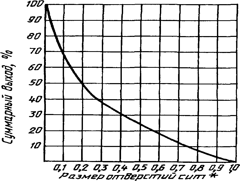<*> Размер отверстий сит в долях максимального диаметра отверстия, через которое прошли все куски исходного материала.