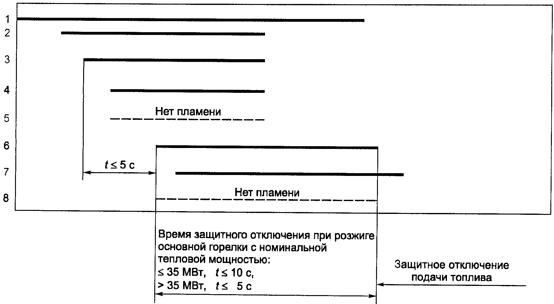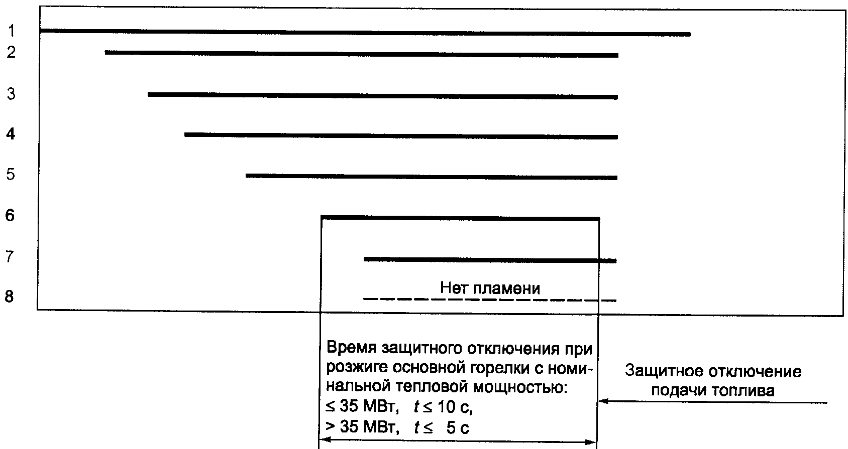 6 - сигнал на подачу топлива в основную горелку; 7 - подача