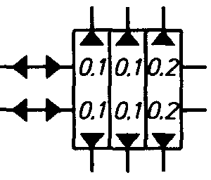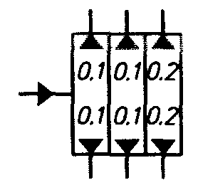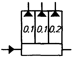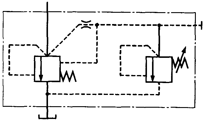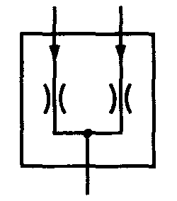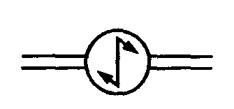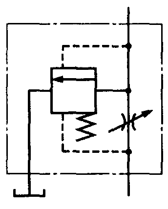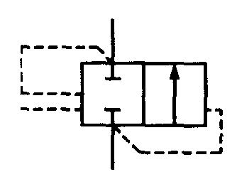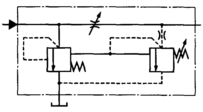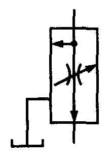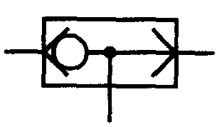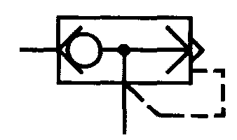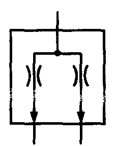 - делитель потока. Поток делится на два потока, расходы которых находятся в установленном соотношении. Стрелки обозначают стабилизацию расходов по давлению | ![]() | |