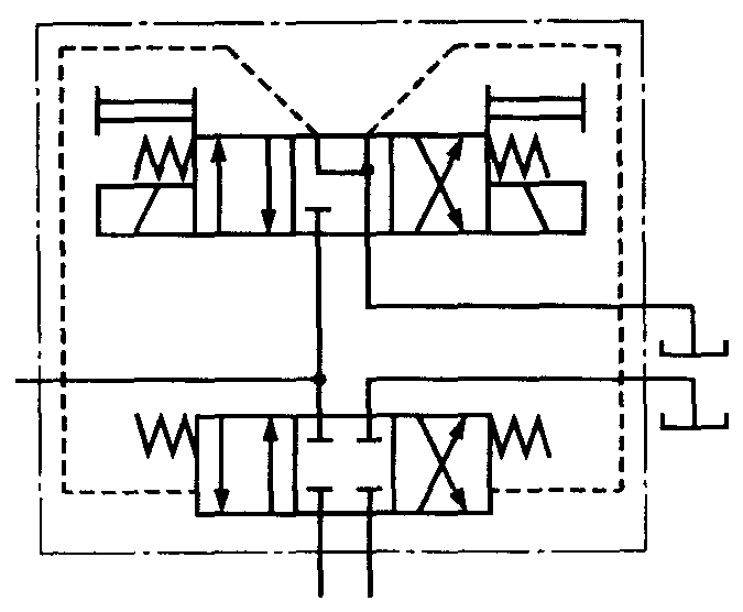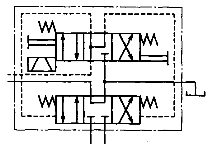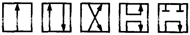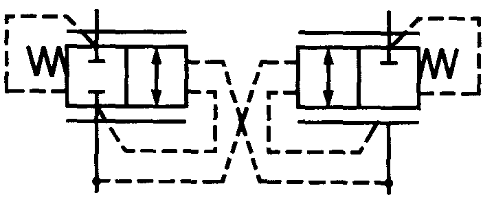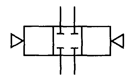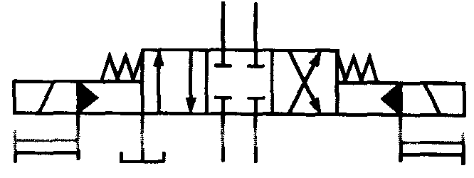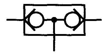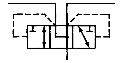 - если механизм управления является центрирующим с помощью давления в нейтральной позиции, то изображают два отдельных треугольника по обеим внешним сторонам | ![]() |