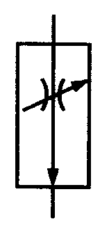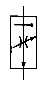 Значение расхода на выходе стабилизируется вне зависимости от изменения температуры и/или давления на входе (стрелка на линии потока в упрощенном обозначении обозначает стабилизацию расхода по давлению): | ||