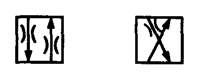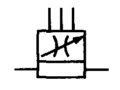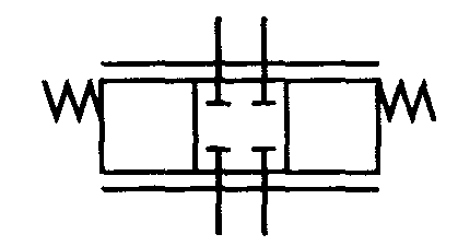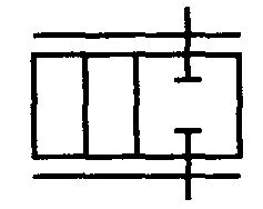 7. Аппараты с двумя или более характерными рабочими позициями и с бесчисленным множеством промежуточных позиций с изменяемой степенью дросселирования изображают двумя параллельными линиями вдоль длины обозначения, как показано. Для облегчения вычерчивания эти аппараты можно изображать только упрощенными обозначениями, приведенными ниже. Для составления полного обозначения должны быть добавлены линии потоков: | Две крайние позиции | |