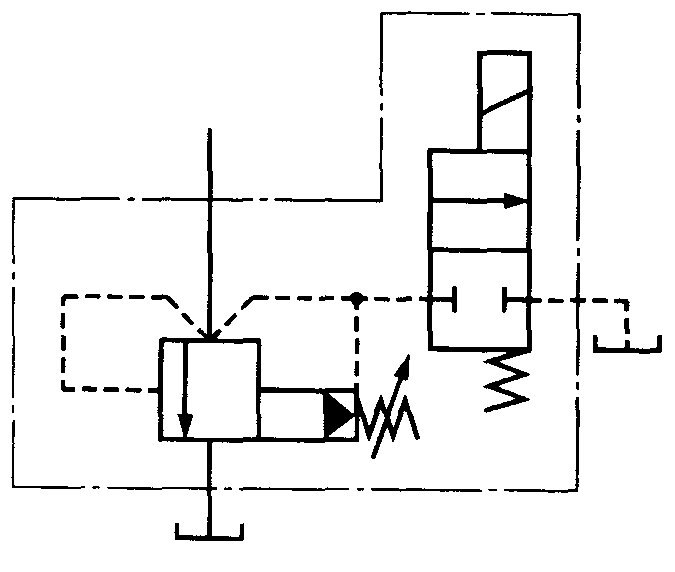 18. Клапан последовательности, одноступенчатый, нагруженный пружиной, на выходе может поддерживаться давление, с наружным дренажом | ![]() | |