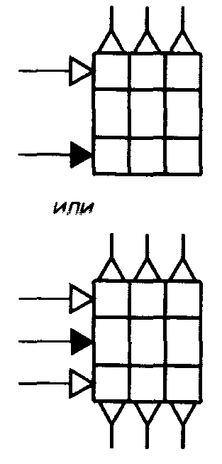 - при параллельном управлении (ИЛИ) обозначения механизмов управления показывают рядом друг с другом: например, электромагнит или нажимная кнопка независимо воздействуют на аппарат | ![]() |