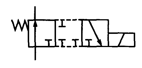 - при последовательном управлении (И) обозначения ступени последовательного управления показывают в линию, например, электромагнит приводит в действие пилот, который приводит в действие основной аппарат | ![]() |