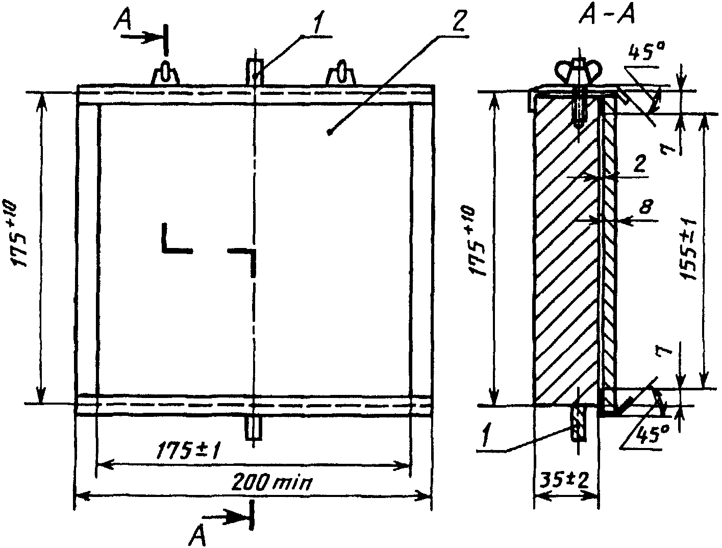 1 - опорная рама; 2 - образец; 3 - монтажный держатель