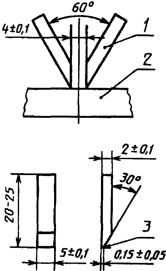 1 - электрод; 2 - образец; 3 - слегка закругленный край