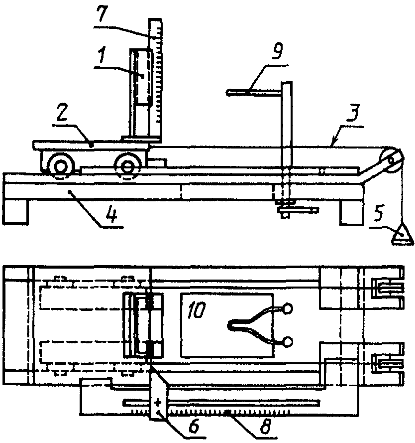 3 - натяжной шнур; 4 - опорная плита; 5 - груз;