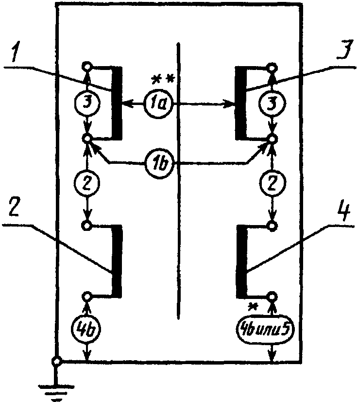 пульсирующего постоянного тока между выводами или между любым выводом и землей.