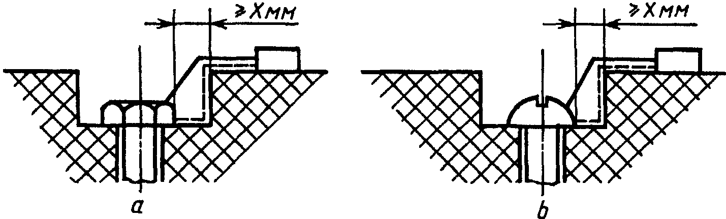 Номинальный диаметр резьбы | Длина резьбы на винте | Длина резьбы в винтовом отверстии или гайке | Номинальная разность между диаметрами головки и хвостовика винта | Высота головки винта |