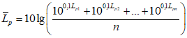 , дБА, может быть рассчитана по известному спектру шума или по оценке спектра шума реального источника по формуле
