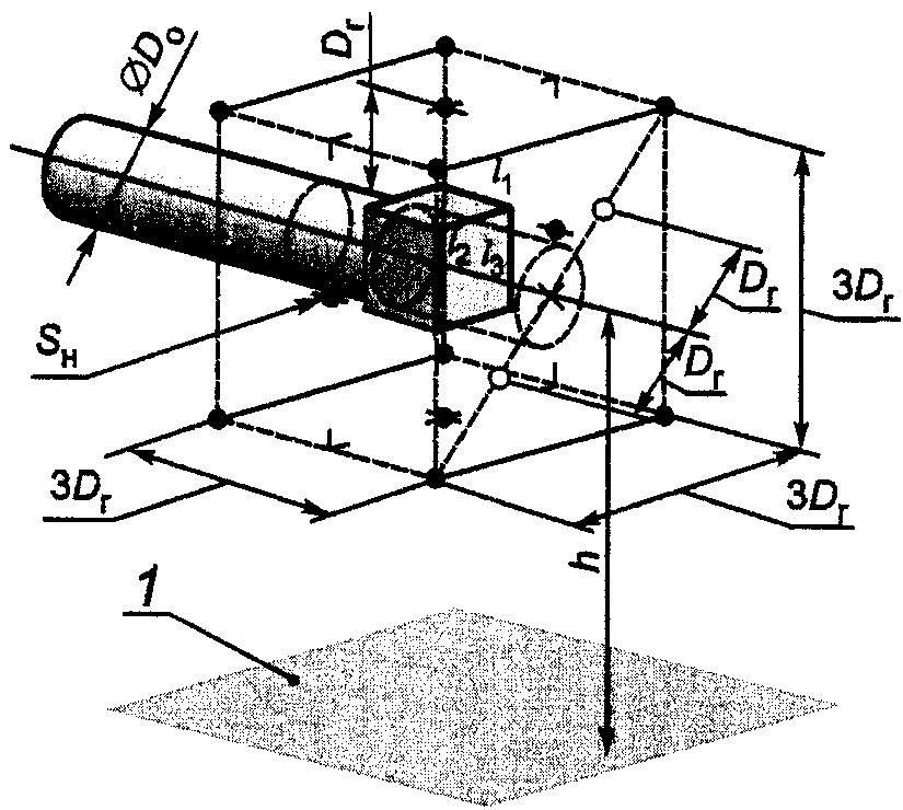 1 - звукоотражающий экран; 2 - измерительная поверхность;