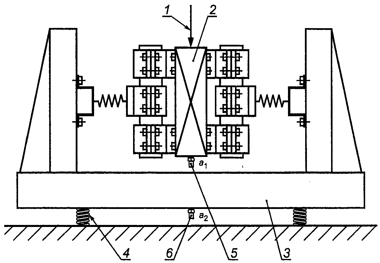 Для проведения таких измерений можно воспользоваться руководством, установленным ИСО 10846-3 (приложение A), где представлены теория, принципы измерений и модификация испытательной установки в отношении испытаний упругих опор, но которые легко распространить на испытания неопорных упругих элементов конструкций".