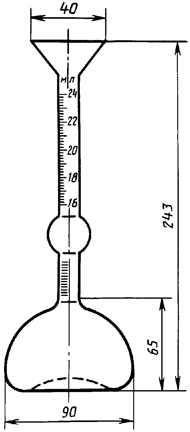 Приращение объема при набухании определяют как среднеарифметическое значение двух результатов.
