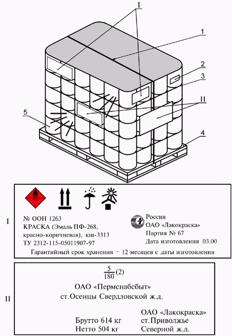 4.1.1. На каждую единицу потребительской и транспортной тары с лакокрасочным материалом, на транспортные пакеты, на средства пакетирования, на специализированные контейнеры, на автоцистерны и железнодорожные цистерны наносят маркировку в соответствии с