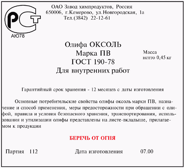 Олифу следует переносить, транспортировать и хранить в плотно закрытой таре. Помещение, где проводится окраска, должно проветриваться.