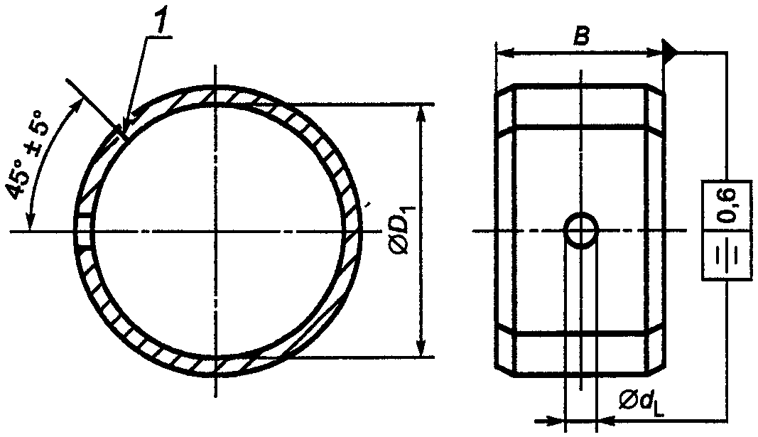Примечание - Для облегчения измерения размеры толщины втулки, оставшейся в основании канавки, могут быть указаны на рисунке как контрольный размер.