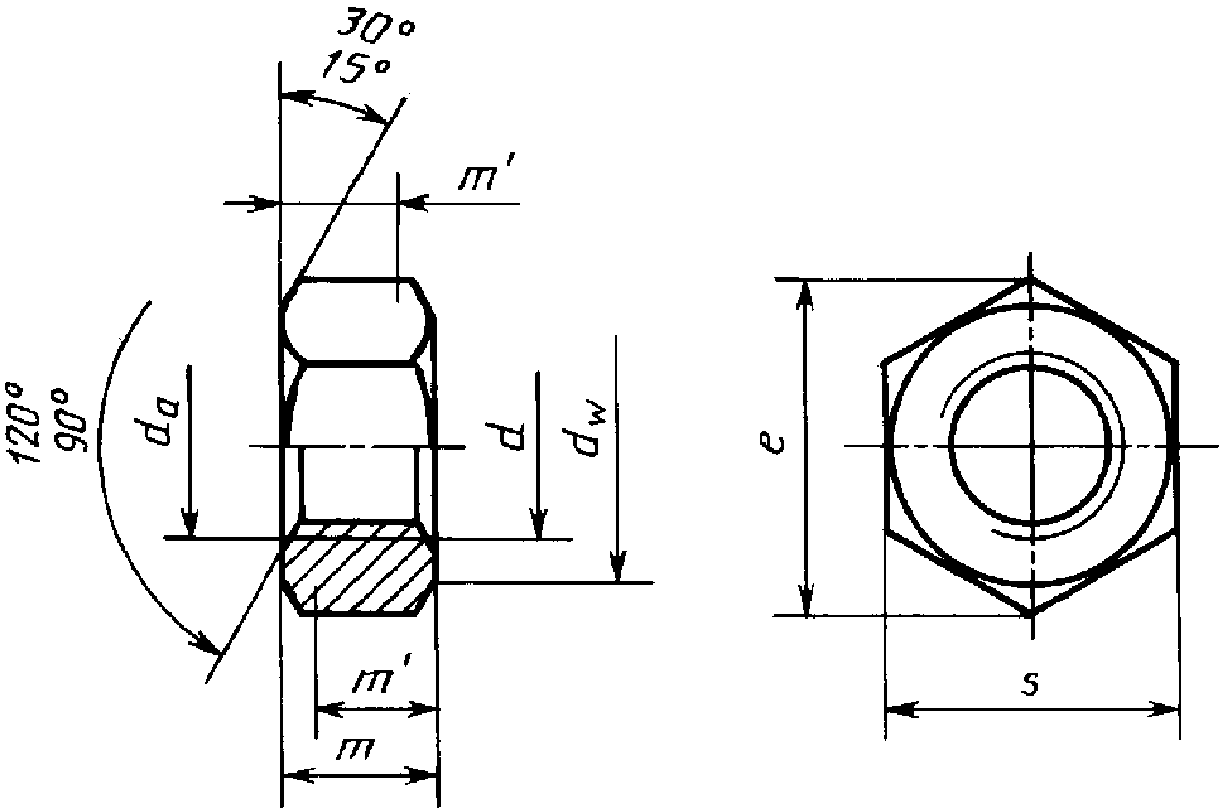 Конструкция и размеры гаек должны соответствовать указанным на рисунке 1 и в