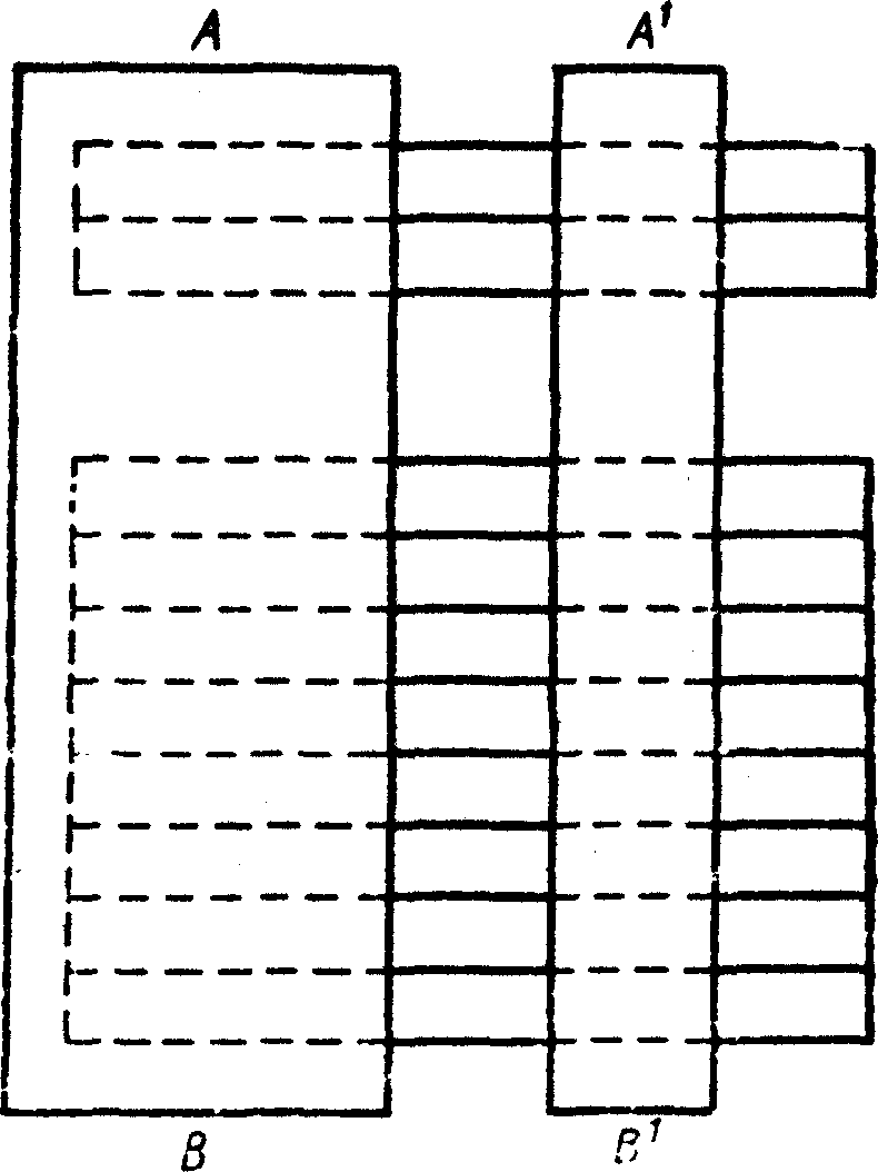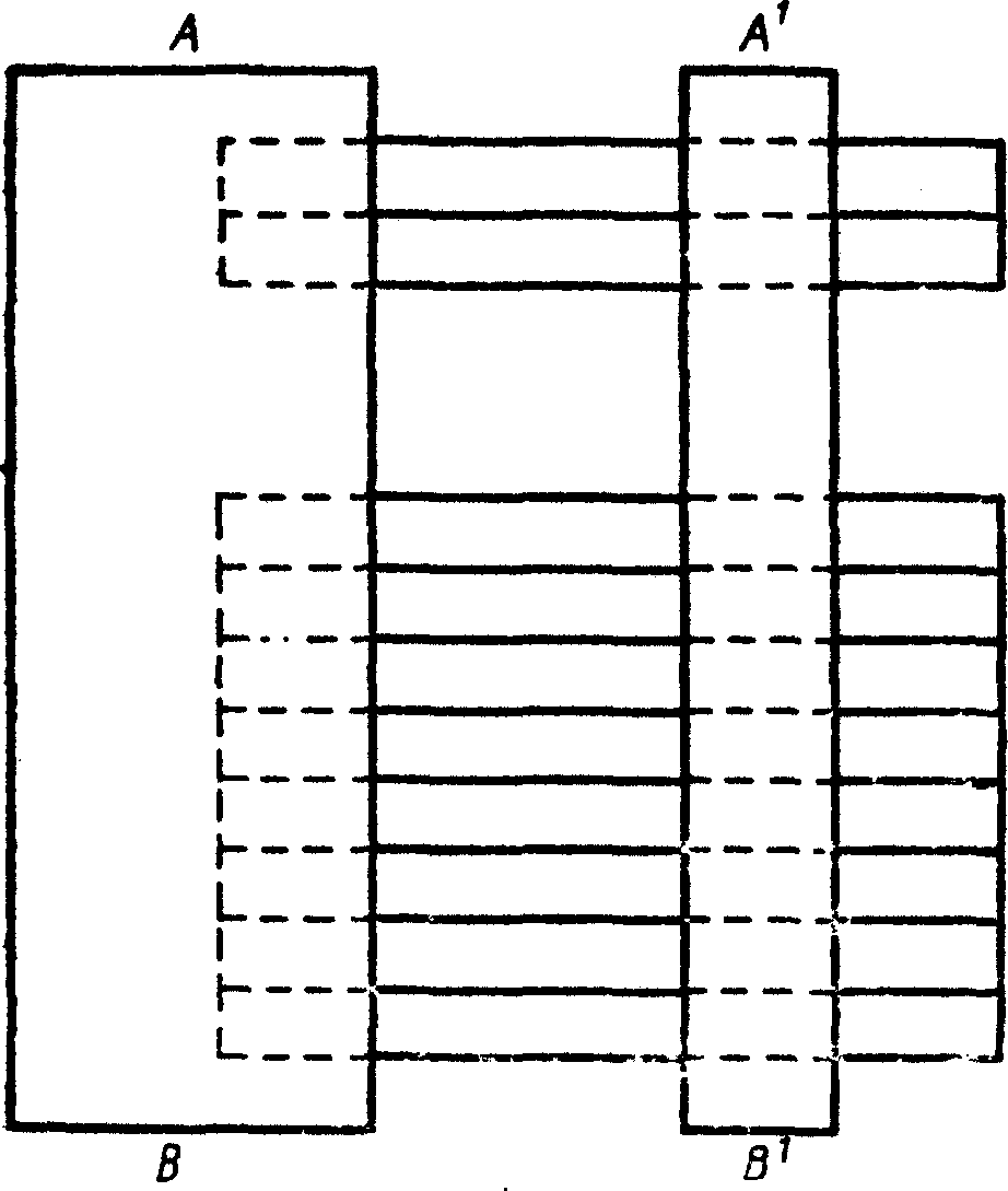 Испытуемые образцы и эталоны располагают, как показано на черт. 1 и закрывают их двумя пластинками: AB и A'B'. Каждая пластинка должна закрывать 1/5 часть общей длины образца и эталона.