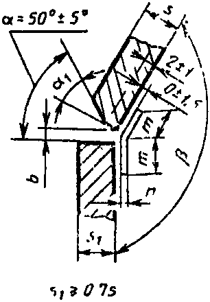 .Условное обозначение сварного соединения | Конструктивные элементы | Обозначение способа сварки | s | +/- 2 | b | |||||||||