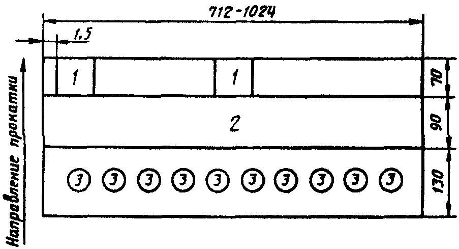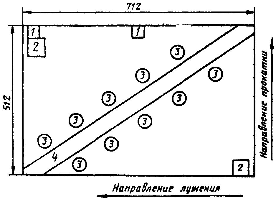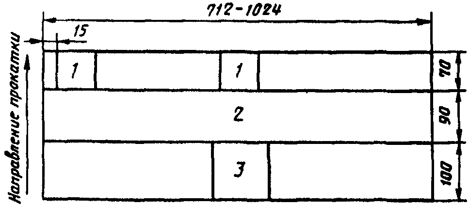 Из каждого листа вырезают образцы размером 100 x 100 мм по схеме, приведенной на