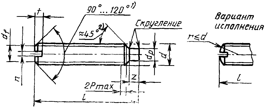 <1> Угол 120° обязателен для коротких винтов, длина которых приведена над штриховой ступенчатой линией в