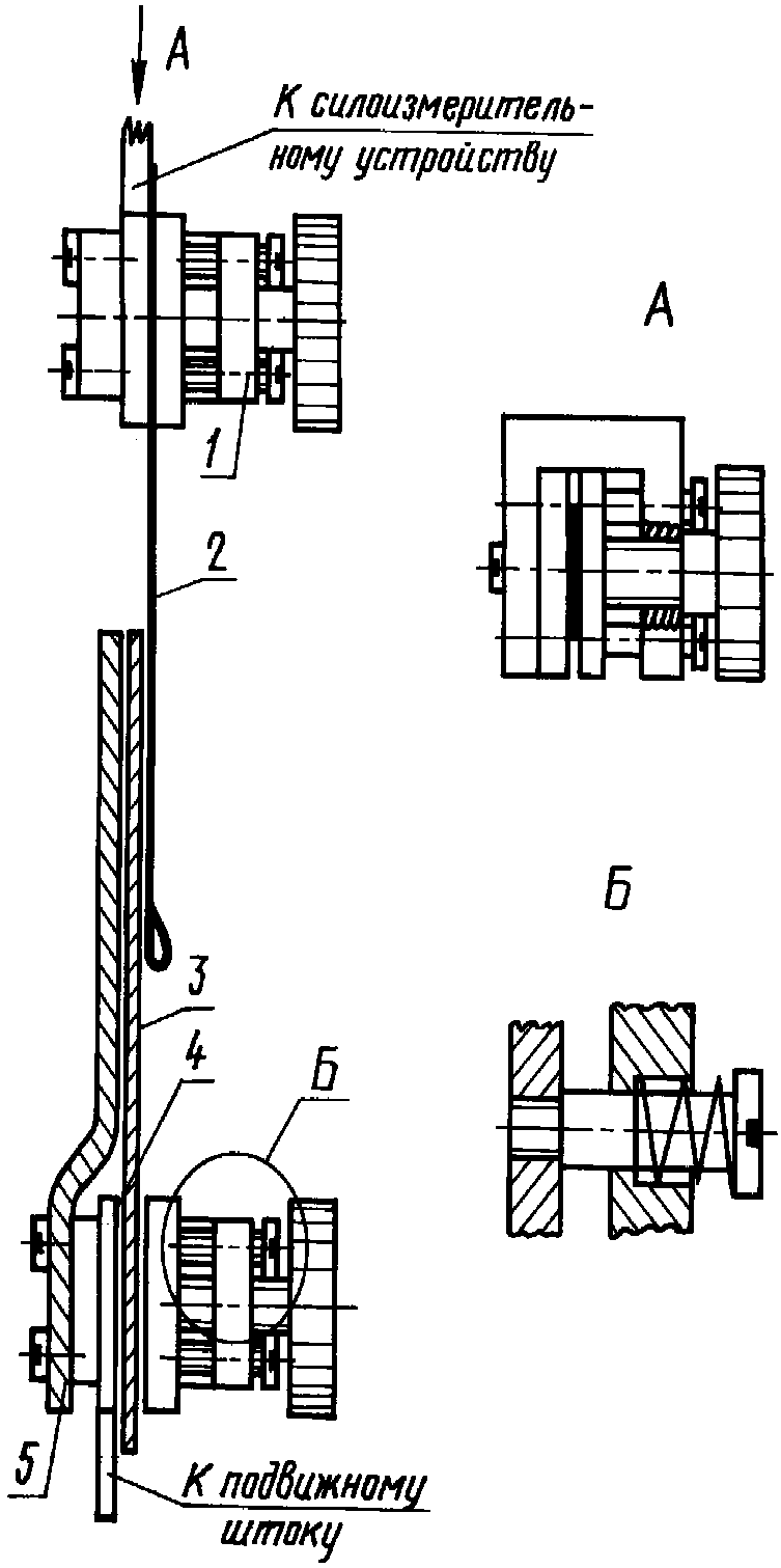 Приспособление для сохранения постоянного угла расслаивания (см. чертеж) прикрепляется к нижнему зажиму разрывной машины.