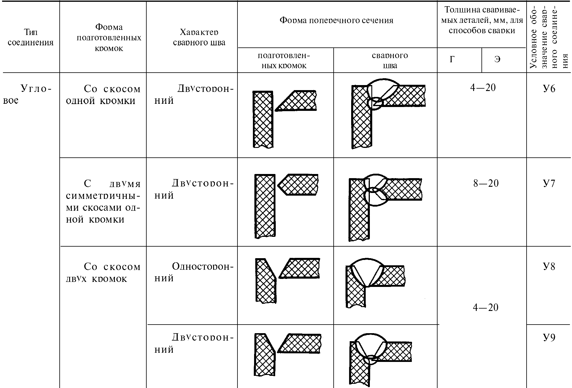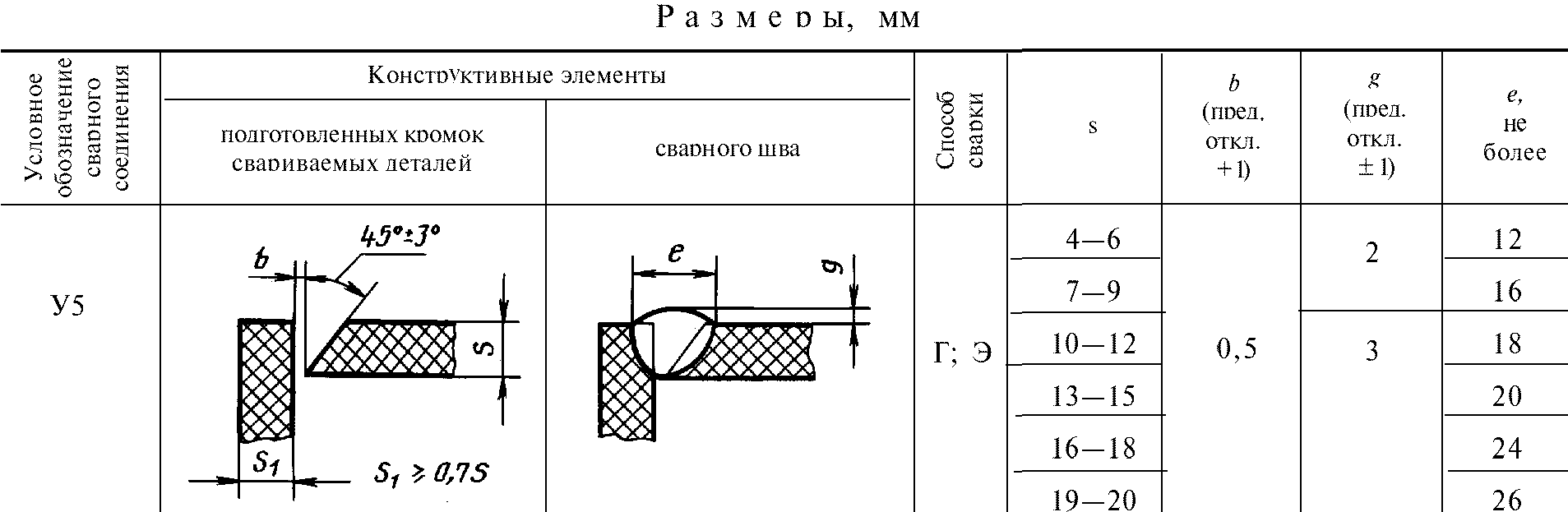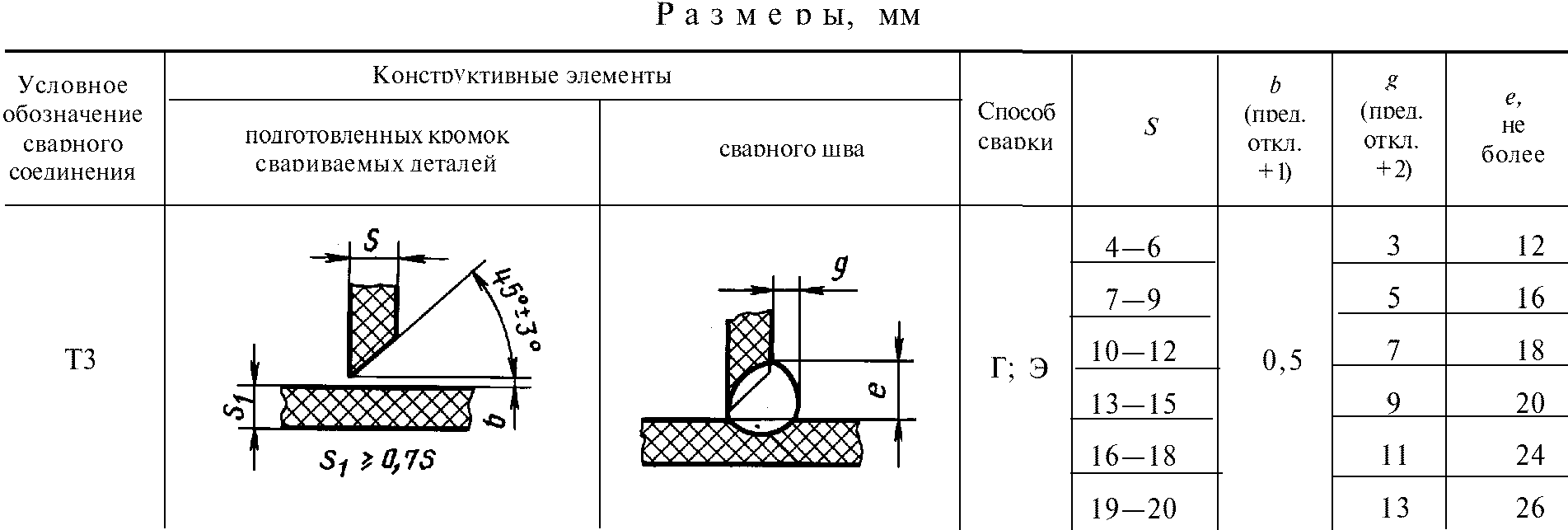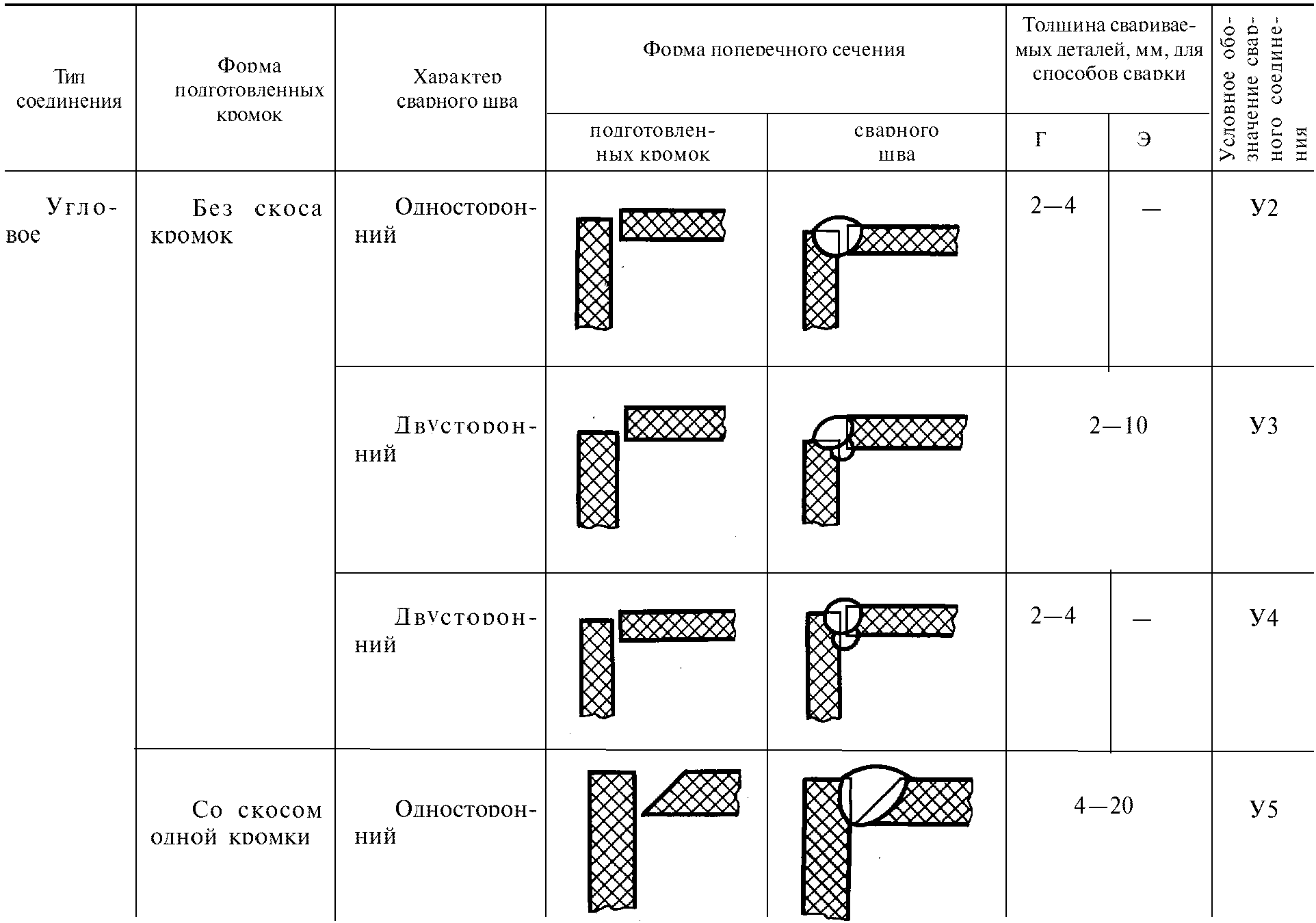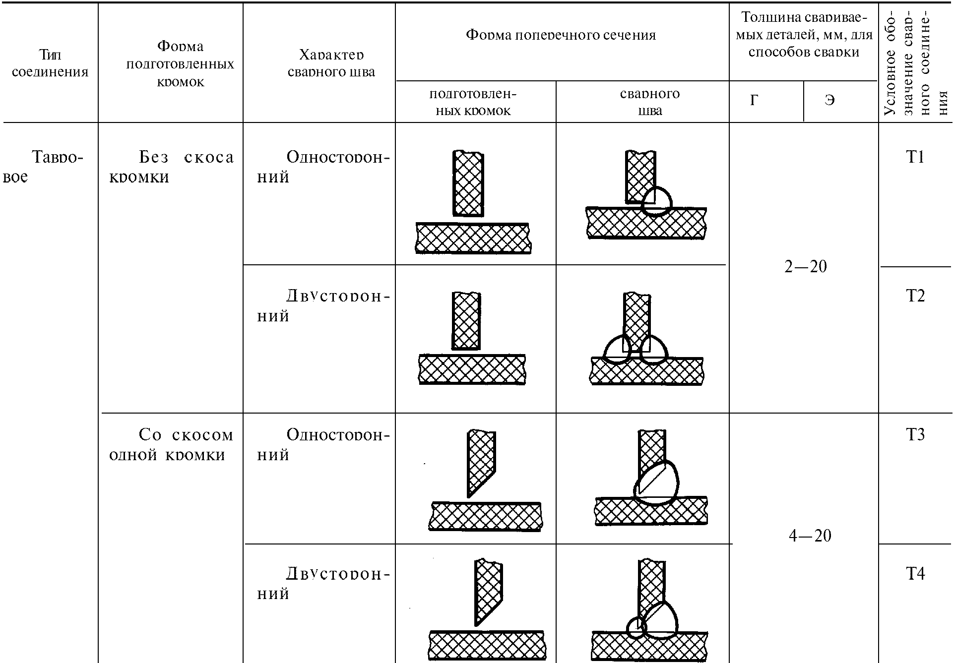 Стандарт не распространяется на угловые и тавровые сварные соединения с углом между соединяемыми элементами, отличным от 90° +/- 5°, а также на соединения трубопроводов.