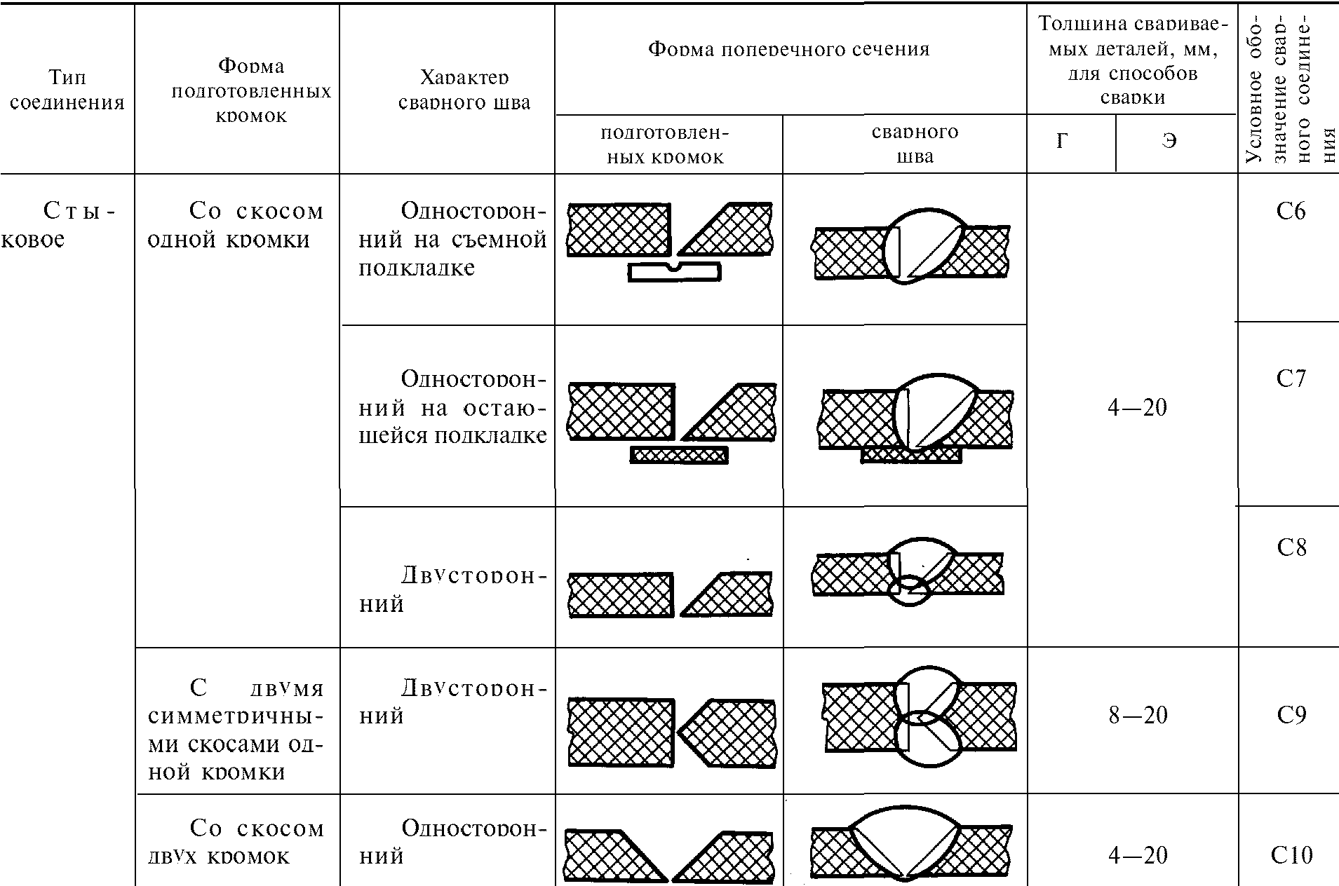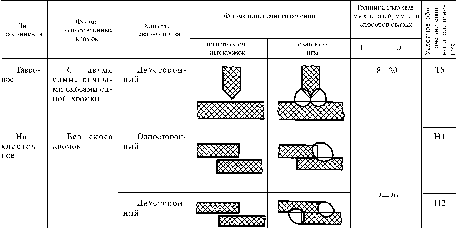 3. Основные типы сварных соединений приведены в табл. 1.